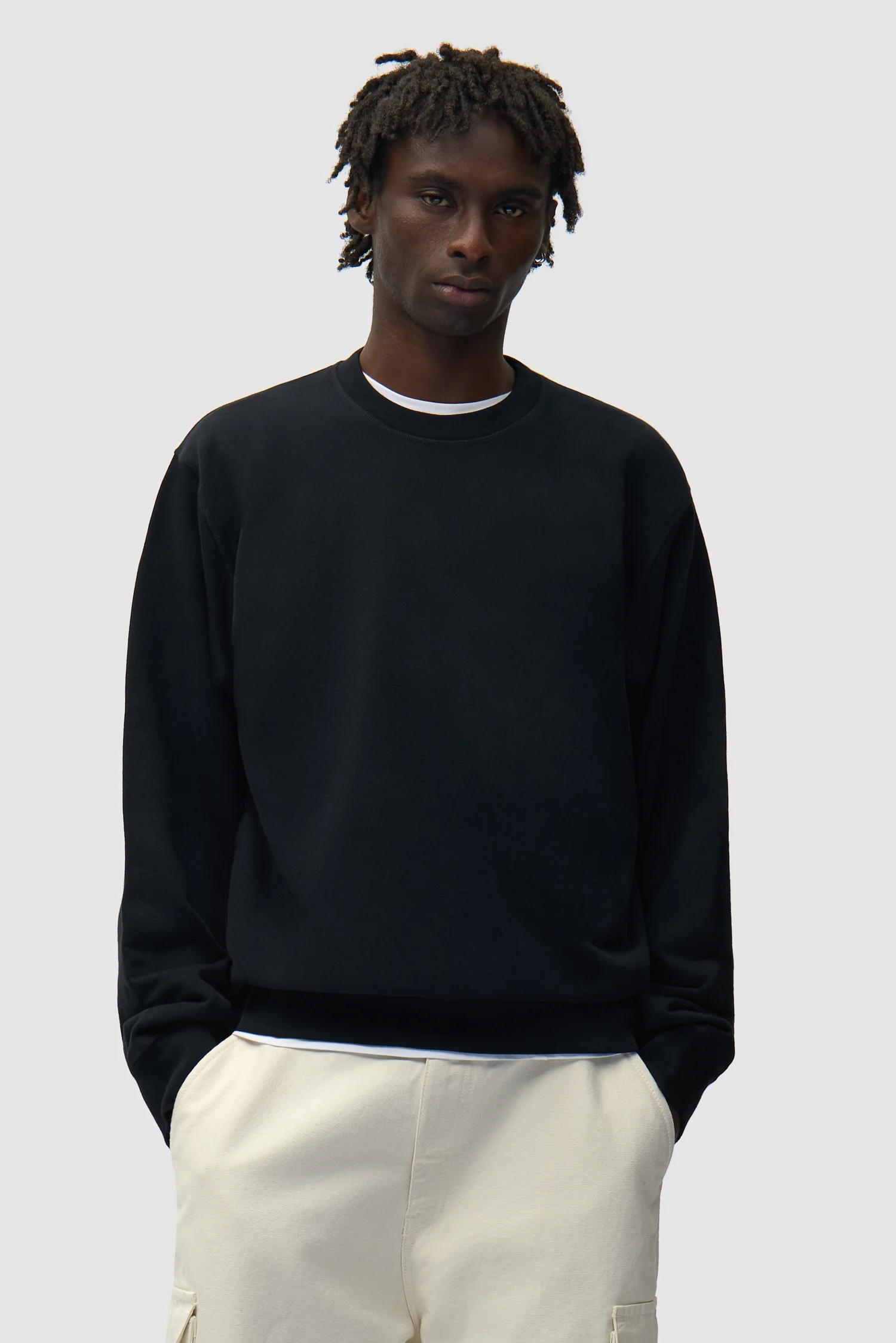 Le col ras du cou présente les caractéristiques suivantes un imprimé graphique bleu dans le dos qui reprend le thème de la collection. Confectionné en coton épais de qualité supérieure, ce t-shirt noir à col rond présente un col légèrement plus haut et une coupe décontractée, avec des poignets, un ourlet et un col côtelés.